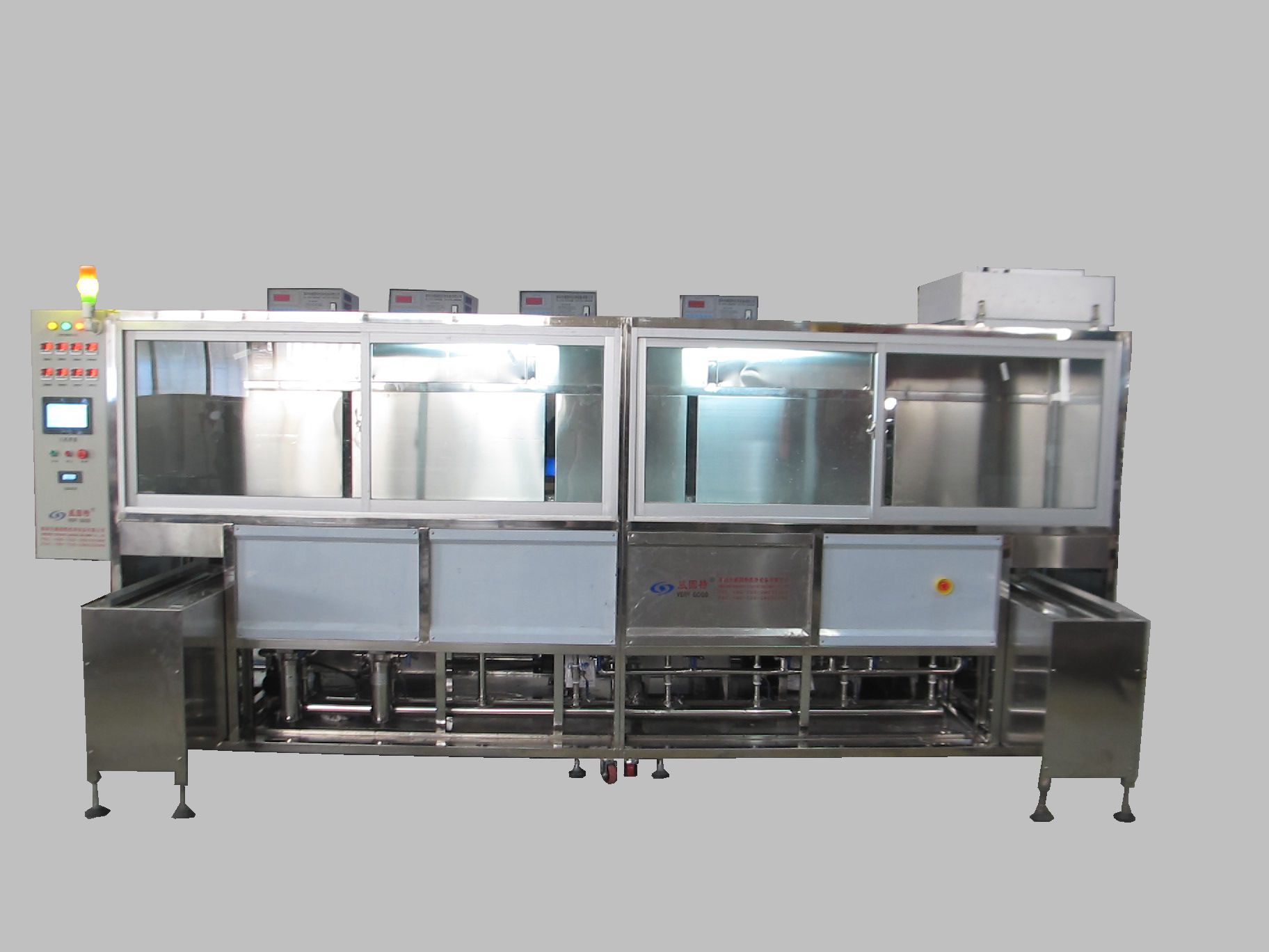 VGT-809FHA光學級平面窗口鏡超聲波清洗機VGT-809FHA光學級平面窗口鏡超聲波清洗機主要由超聲波發生器、超聲波振板、洗劑超聲槽、市水超聲槽、純水超聲槽、儲液槽、循環過濾系統、自動恒溫加熱系統、拋動裝置、機架、高位水箱、電器控制系統等組成。
