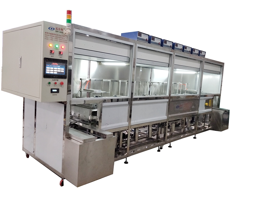 自動上料→1超聲水劑洗(拋動)28K→2超聲純水漂洗(拋動)40K→超聲純水漂洗(拋動)40K→自動下料。